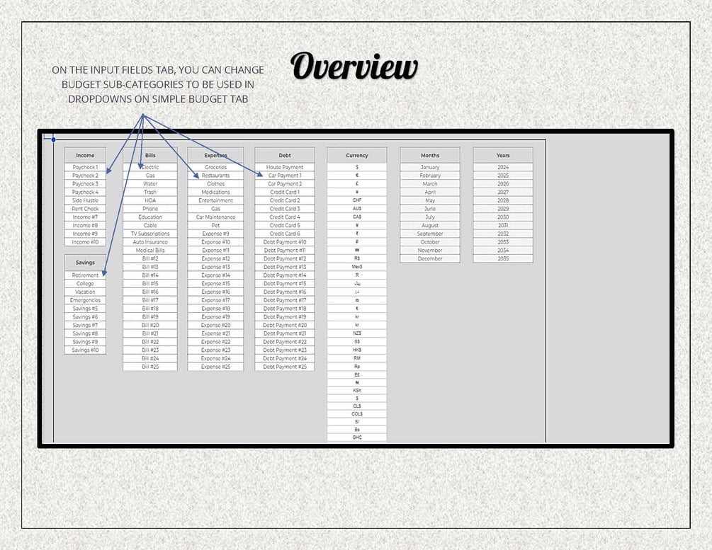Semi-Customizable Components: Tailor your tracker to your unique needs with easy-to-adjust budget sub-categories. It's all about flexibility!