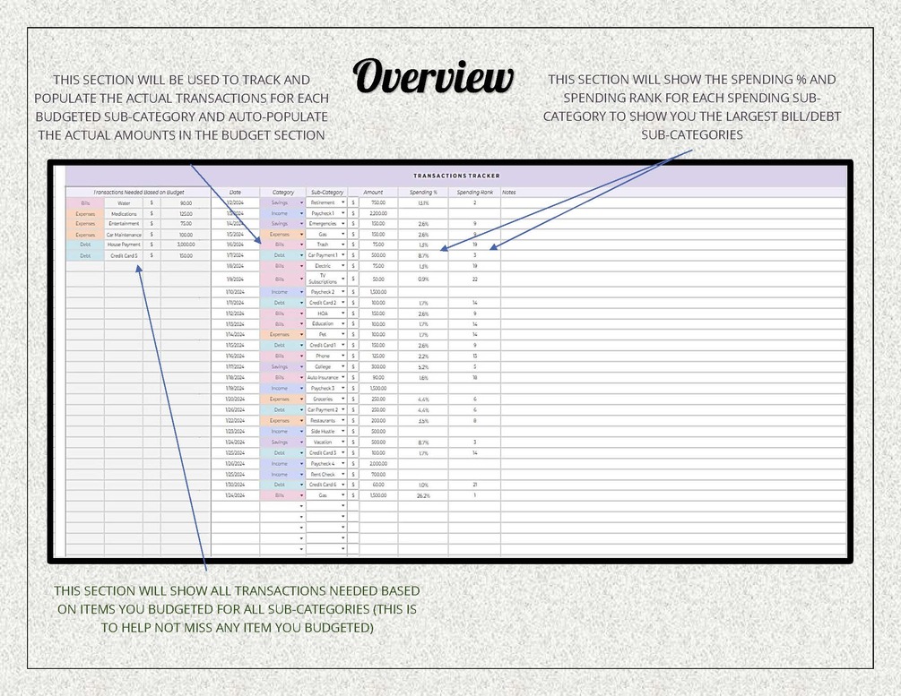 Semi-Customizable Components: Tailor your tracker to your unique needs with easy-to-adjust budget sub-categories. It's all about flexibility!